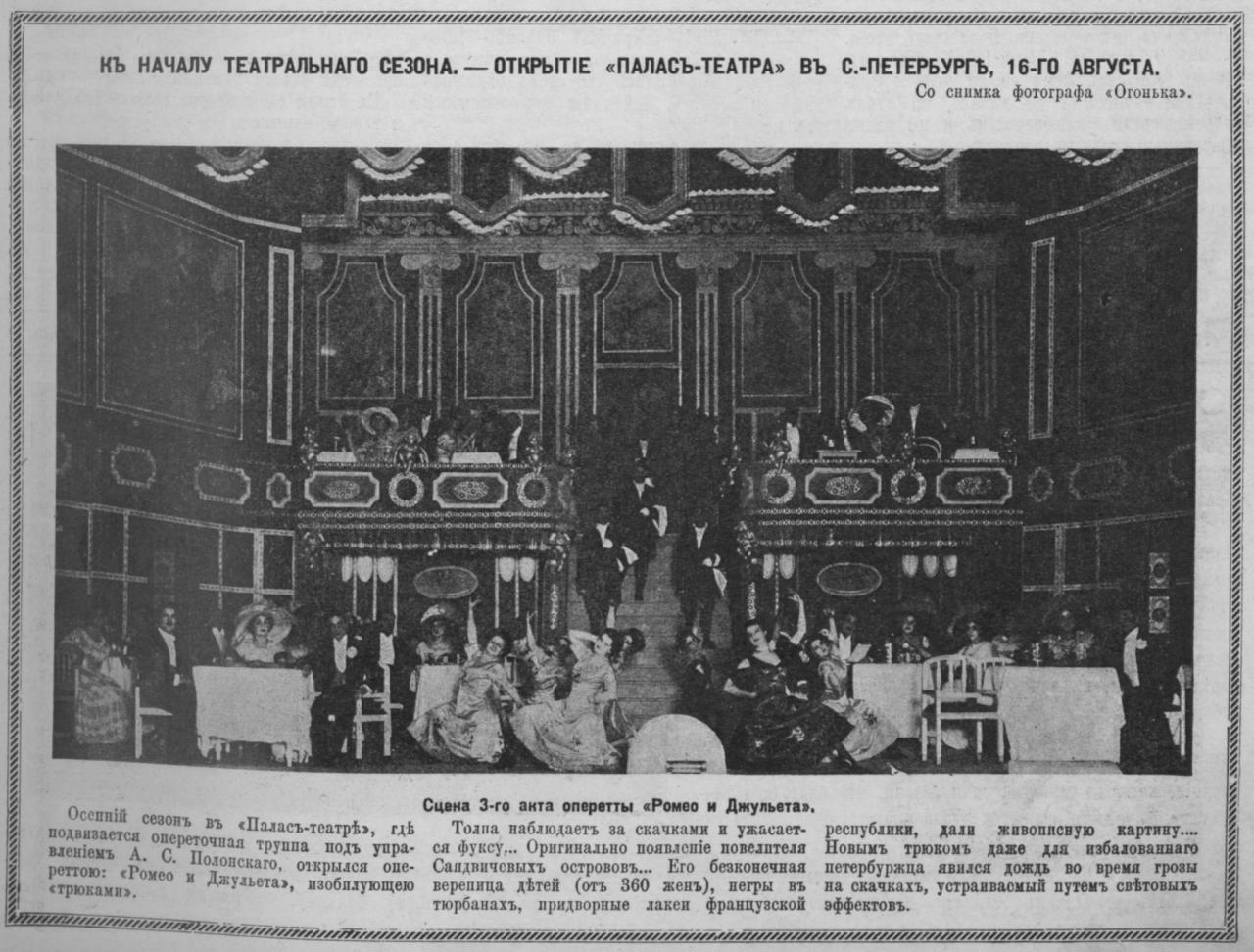 Обгорелый и никому не нужное здание по адресу Итальянская 13 переходит в городскую казну. Так, из руин дома актрисы родился «Палас-театр». Пока на главной сцене блистали выдающиеся исполнители оперетт (Виктория Кавецкая, Александр Брагин, Юрий Морфесси), на первом этаже можно было посетить ресторан, где после спектакля зрителям предлагали продолжить отдых под веселые номера.